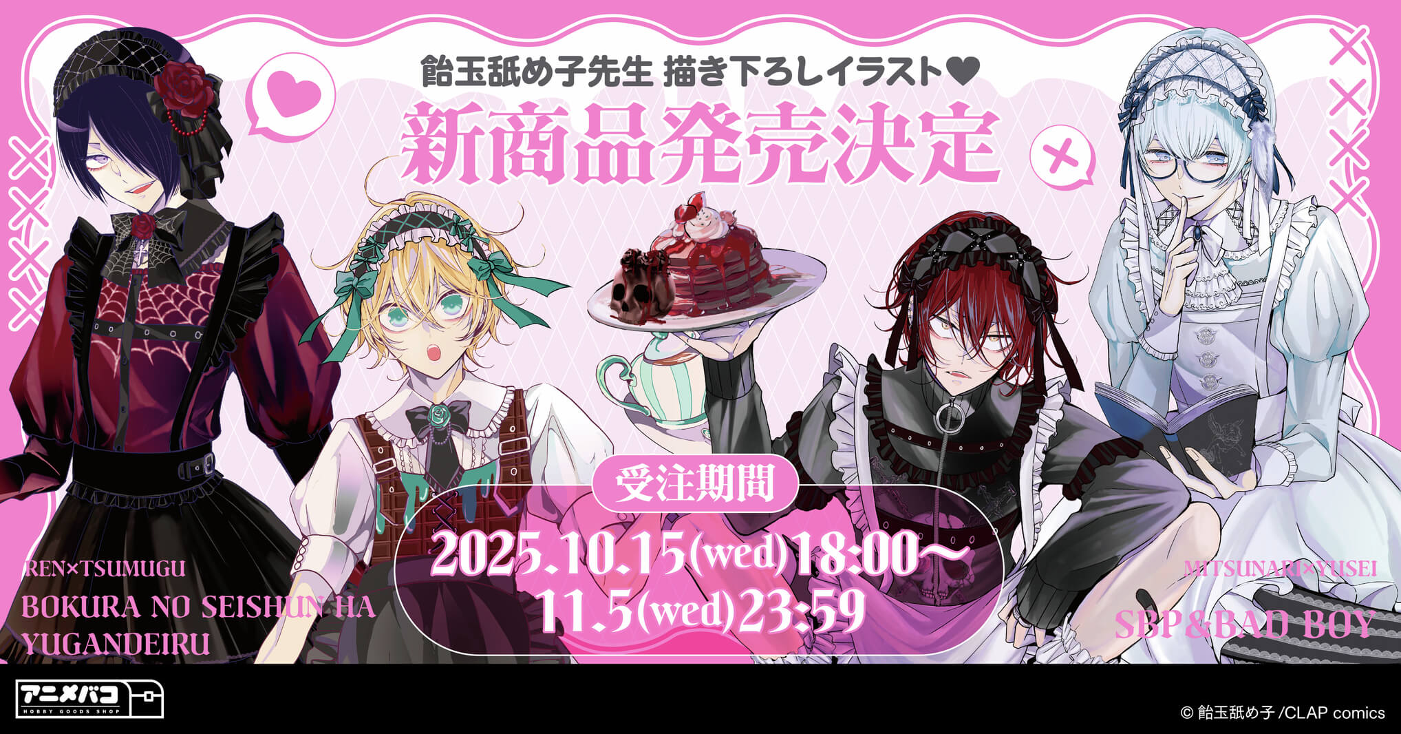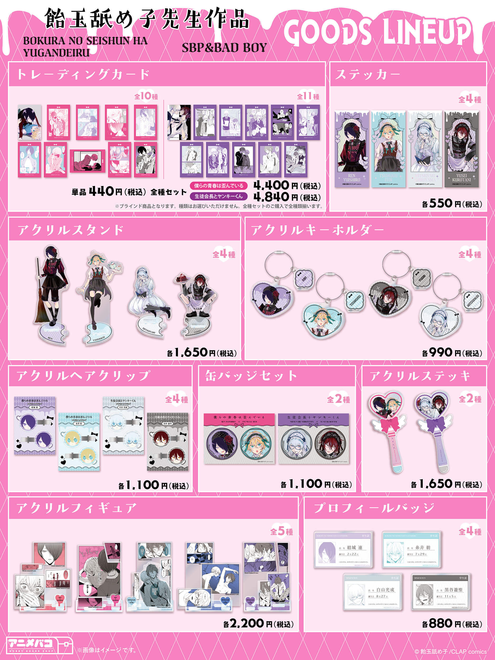 飴玉舐め子先生「僕らの青春は歪んでいる」「生徒会長とヤンキーくん」コラボグッズ発売決定!